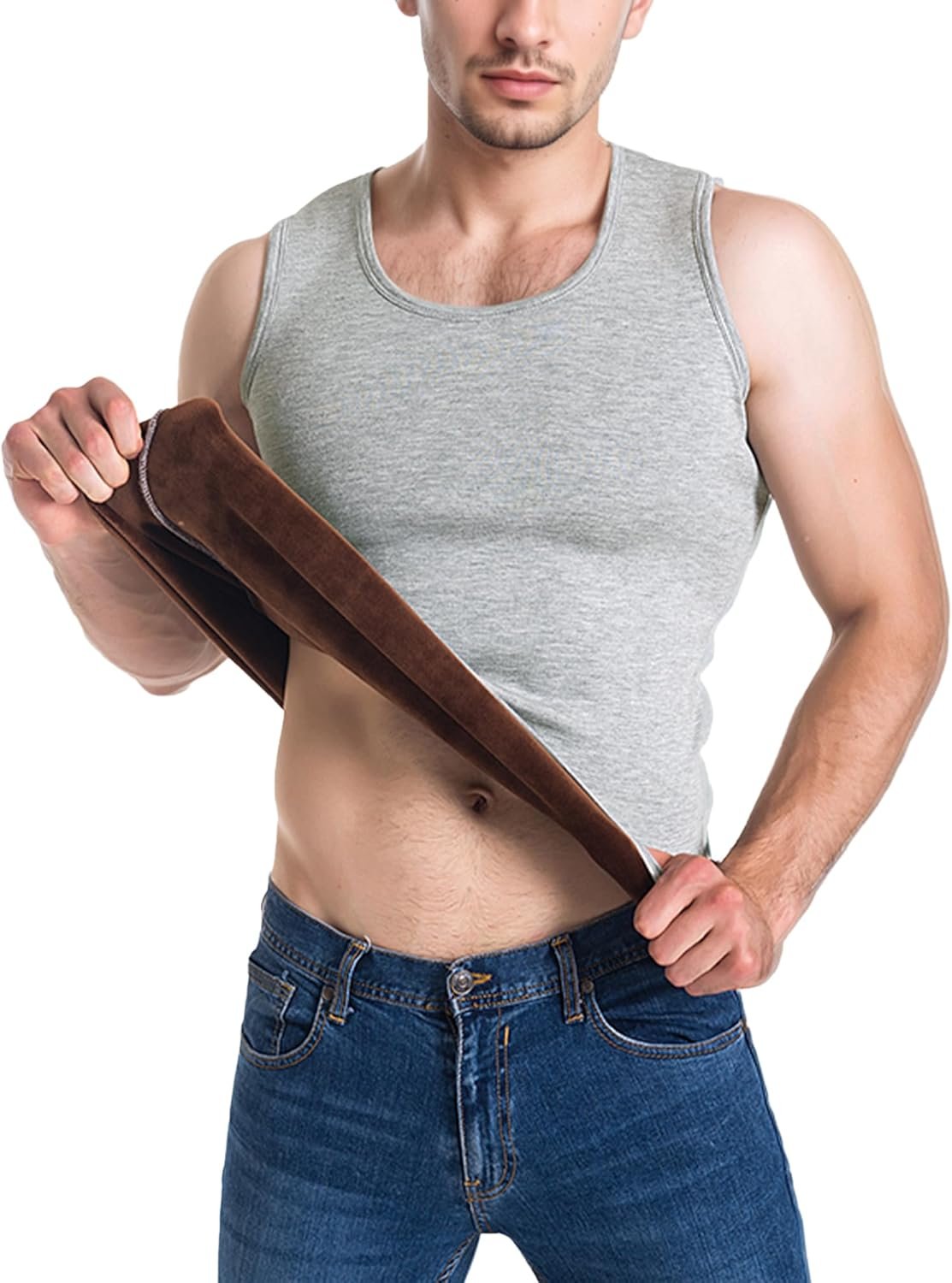 - Details: Lined scoop neckline tank top. Featuring neat stitching and a soft outer fabric design, this undershirt offers durability and a smooth appearance. The fleece lining adds an extra layer of warmth, making it ideal for colder weather